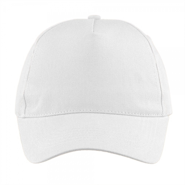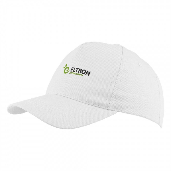 Czapka z daszkiem, posiada 5 paneli oraz zapięcie na rzep umożliwiający regulację rozmiaru, produkt wykonany z bawełny 155 g/m²