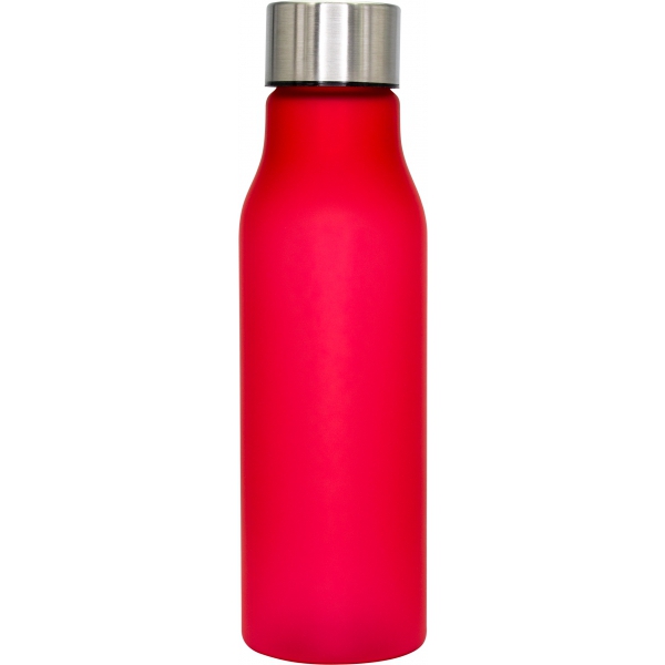 Butelka o pojemności 550 ml, wykonana z przyjemnego w dotyku plastiku z gumowym wykończeniem i metalową zakrętką.