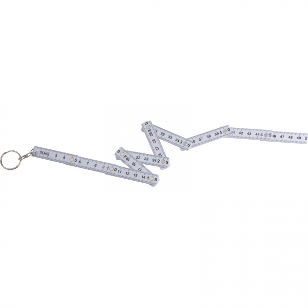 Brelok ze składaną, plastikową miarką o długości 0,5 m.