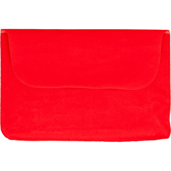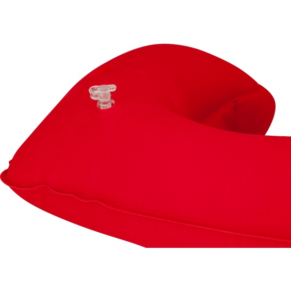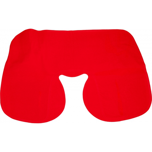 Welurowa, dmuchana poduszka podróżna o ergonomicznym kształcie. Wymiary na płasko: 41,5 x 26,5 cm, wymiary po napompowaniu: 34 x 25 x 10 cm.