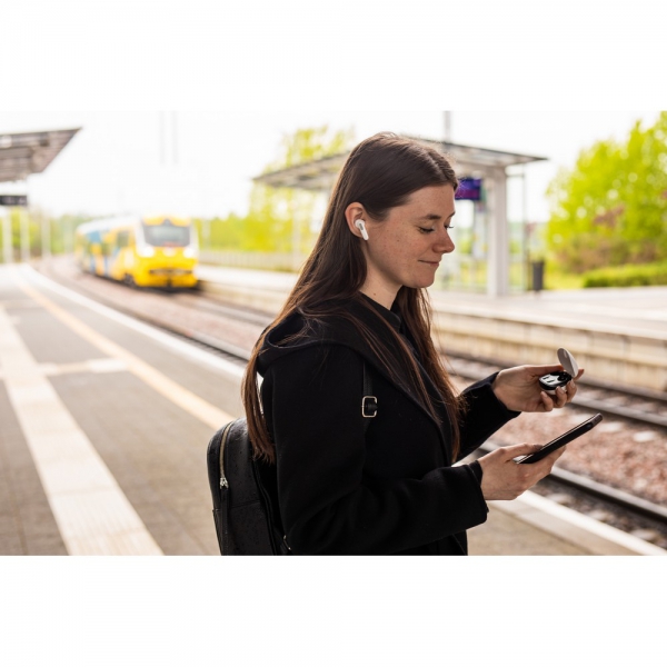 Bezprzewodowe słuchawki douszne 2x30 mAh z systemem aktywnej redukcji szumów (ANC) w etui ze stacją ładującą słuchawki 200 mAh, BT 5.0, funkcja odbierania połączeń i odtwarzania muzyki, ładowane przez USB, czas pracy: ok. 2h, etui z cyfrowym wyświetlaczem poziomu naładowania, zasięg do 10 m, kabel USB-C w komplecie