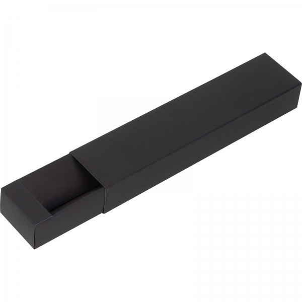 Czarne kartonowe opakowanie na długopis lub pióro, wysuwane.