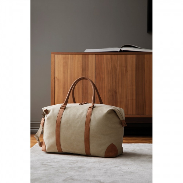 Torba podróżna, sportowa, przestronna przegroda główna, wykonana w 60% z bawełny i 40% poliestru pochodzących z recyklingu, regulowany pasek na ramię