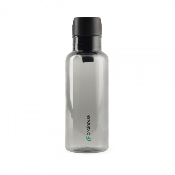 Butelka sportowa 600 ml, wykonana z RPET, całkowita zawartość materiałów z recyklingu obliczona na podstawie wagi całkowitej przedmiotu: 63%, nadaje się wyłącznie do zimnych napojów, zalecane mycie ręczne, w pudełku z papieru kraftowego