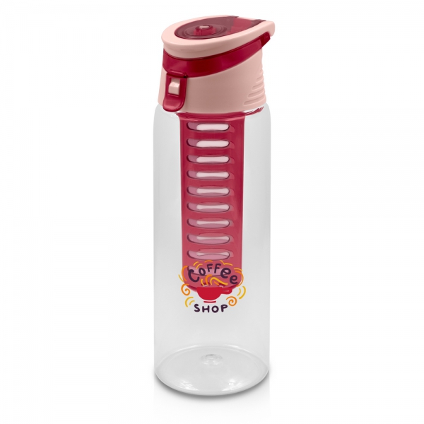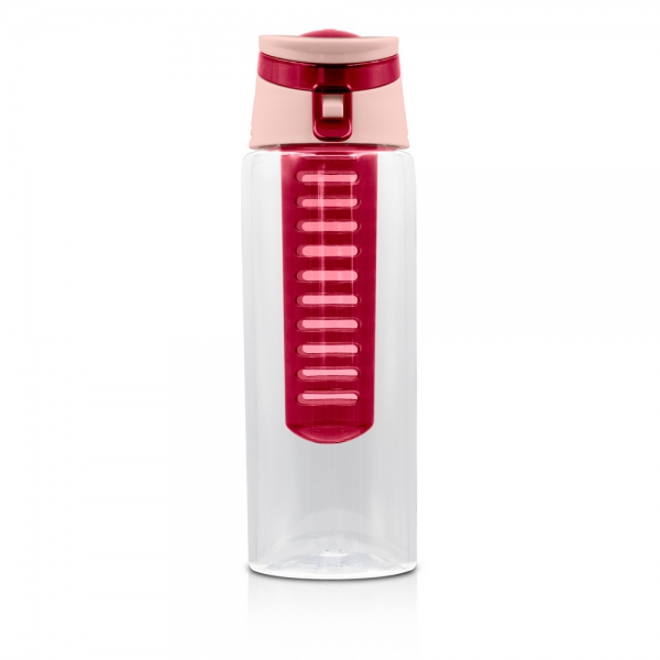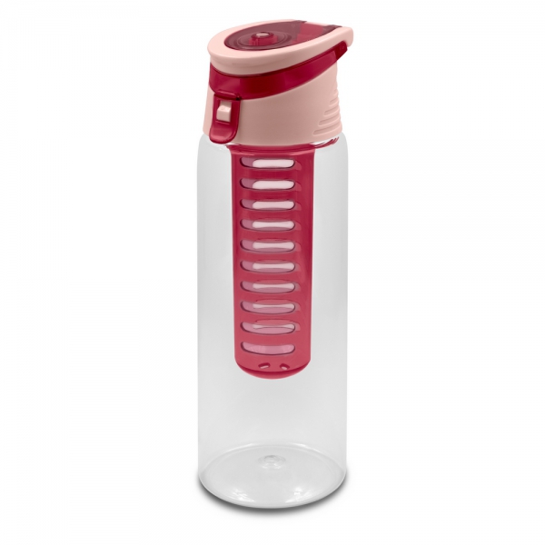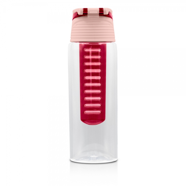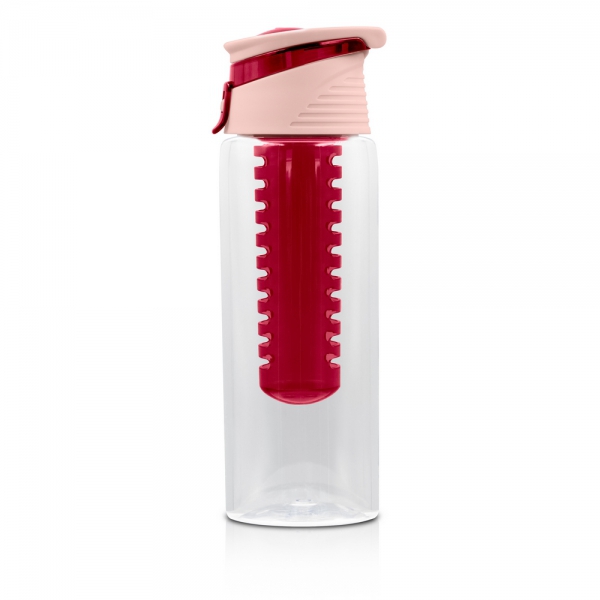 Butelka sportowa 700 ml Air Gifts, posiada pojemnik na lód lub owoce umożliwiający nadanie wodzie smaku według własnych preferencji, kolorowa zakrętka ze składanym uchwytem ułatwiającym noszenie, butelka przeznaczona wyłącznie do zimnych i niegazowanych napojów, produkt wykonany z plastiku