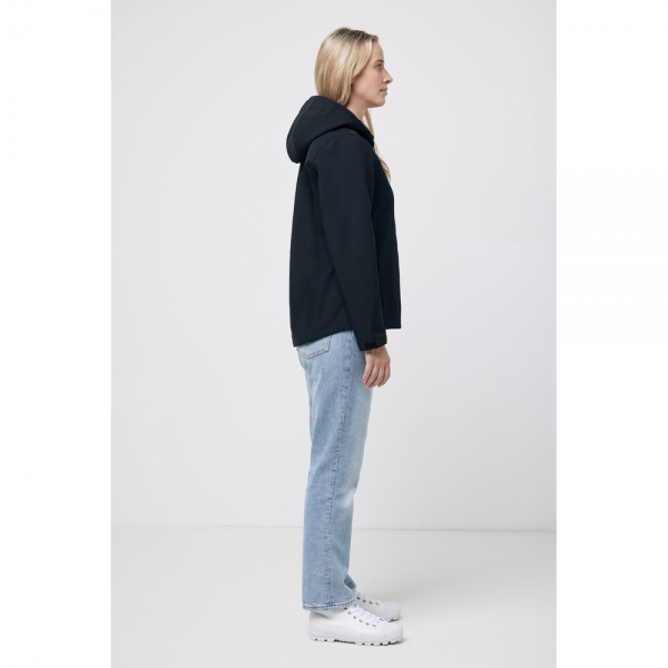 Damska kurtka softshell, wykonana z poliestru z recyklingu, 3 warstwowy materiał o gramaturze 300 g/m2, miękki polar wewnątrz, zapięcia mankietów na rzep, kaptur z regulacją, 2 kieszenie zamykane na zamek, wodoodporna dzięki zastosowanej technologii BIONIC-FINISH® ECO, wiatroszczelna i oddychająca konstrukcja, posiada certyfikat OEKO-TEX® STANDARD 100, posiada znacznik AWARE™, który gwarantuje, że wykorzystane materiały pochodzą z recyklingu, 2% wpływów z każdego sprzedanego produktu z kolekcji Impact jest przekazywane na rzecz Water.org, ślad węglowy produktu: 16,01 kg CO2