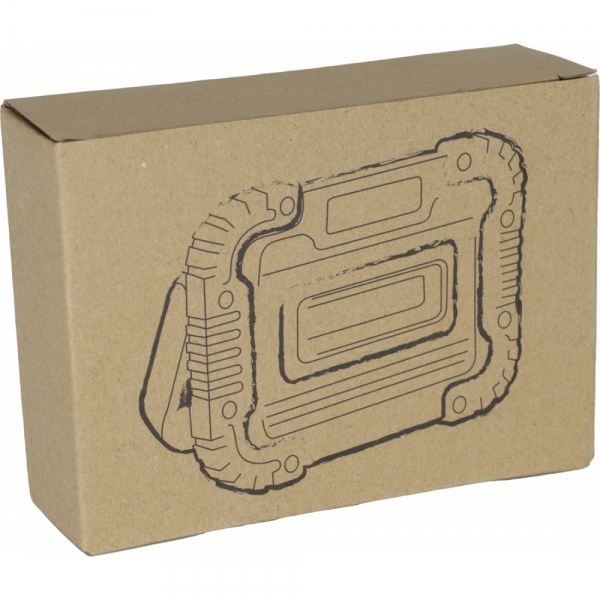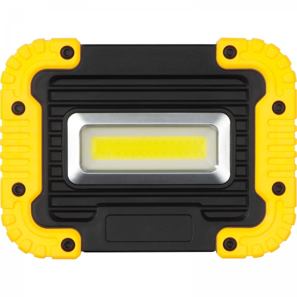 Plastikowa lampa robocza o mocy 10 W. Wyposażona w 3 tryby świecenia (zwykły, SOS i migający) i składany uchwyt, który może służyć jako podstawka do utrzymania lampy w konkretnej pozycji lub jako rączka do przenoszenia.