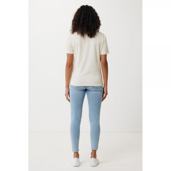 Koszulka damska, regularny krój, okrągły dekolt, krótkie rękawy, wykonana w 30% z bawełny z recyklingu i w 70% z bawełny organicznej o gramaturze 160 g/m2, posiada wbudowany znacznik AWARE™, który potwierdza wykorzystanie materiałów z recyklingu, posiada kod QR na metce, który prowadzi do cyfrowego paszportu produktu, 2% wpływów z każdego sprzedanego produktu z kolekcji Impact jest przekazywane na rzecz Water.org, ślad węglowy produktu: 2,85 kg CO2