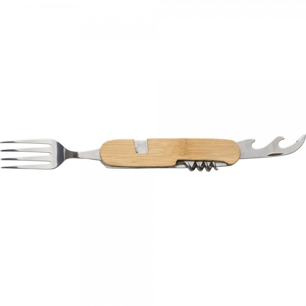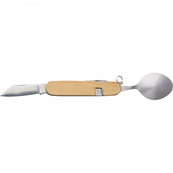 Narzędzie wielofunkcyjne, 6 funkcji, bambusowa obudowa, sztućce można odczepić z narzędzia