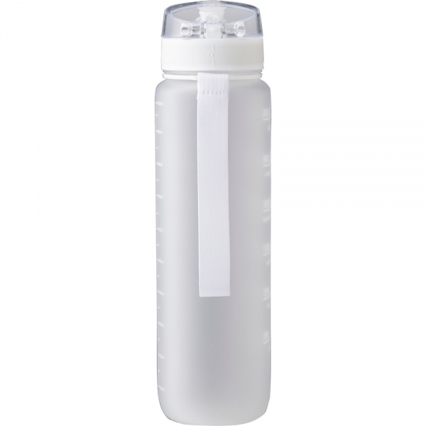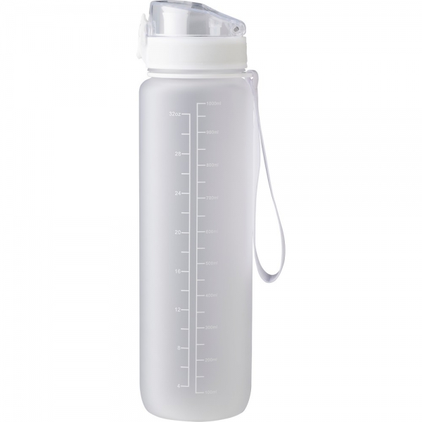 Butelka motywacyjna RPET 1000 ml, skala ml z jednej strony i miarka motywacyjna z drugiej strony, gumowane wykończenie