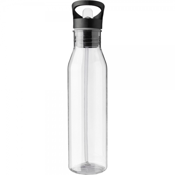 Butelka sportowa 730 ml ze składanym ustnikiem i słomką do wygodnego picia napoju w środku, uchwyt ułatwiający noszenie połączony z zakrętką, polecana do zimnych i niegazowanych napojów, produkt wykonany z RPET