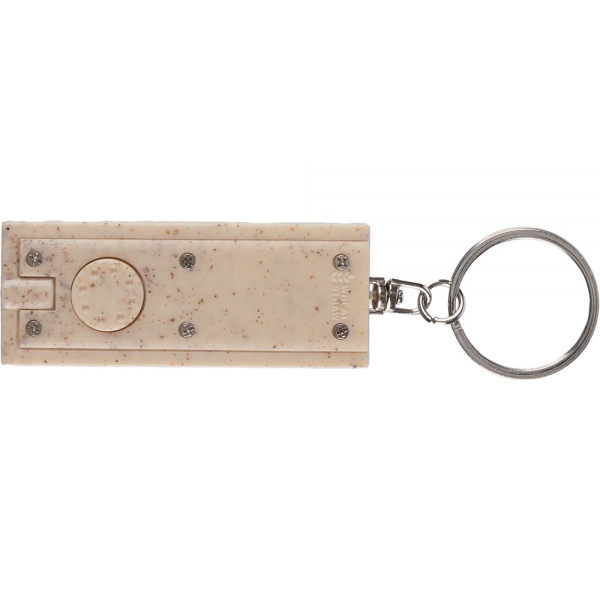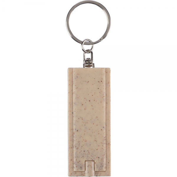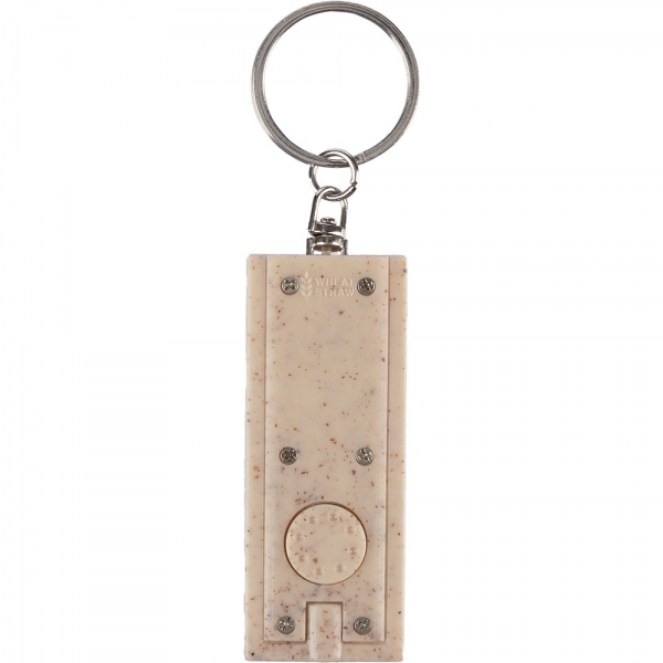 Brelok do kluczy z małym światełkiem LED z przyciskiem włączania/wyłączania, sprawdzi się jako drobne źródło światła w nieprzewidzianych sytuacjach, produkt wykonany ze słomy pszenicznej