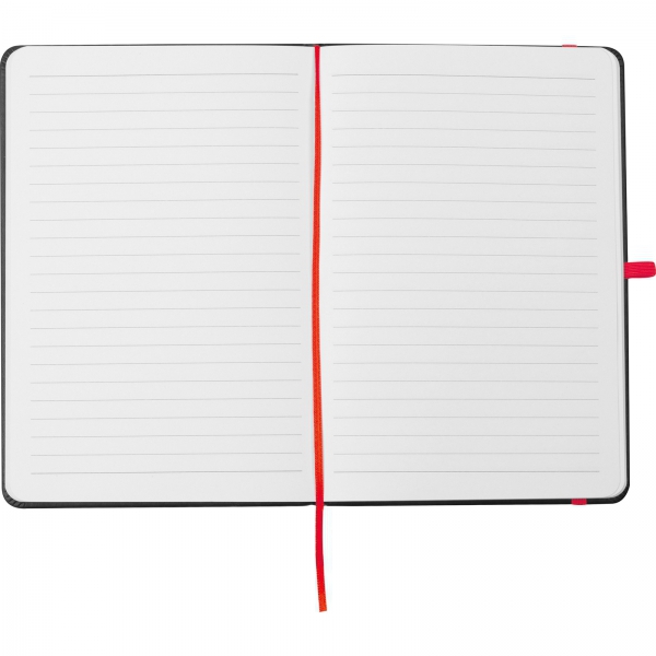 Notes o formacie A5, z okładką wykonaną z PU. Posiada 192 stron w linię, o gramaturze 70 g/m2. Notes ma również zakładkę i gumkę do zamykania. Grawer odsłania kolor okładki.