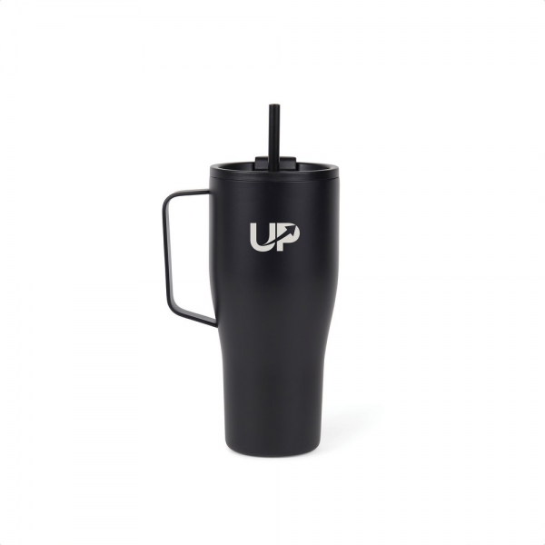 Kubek termiczny 880 ml, uchwyt, podwójne ścianki z próżnią pomiędzy, utrzymuje temperaturę napojów ciepłych do 3 godzin oraz zimnych do 16 godzin, wykonana ze stali nierdzewnej z recyklingu z certyfikatem RCS, całkowita zawartość materiałów z recyklingu obliczona w oparciu o wagę całkowitą przedmiotu: 65%, wyłącznie mycie ręczne
