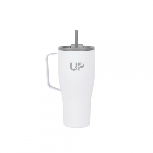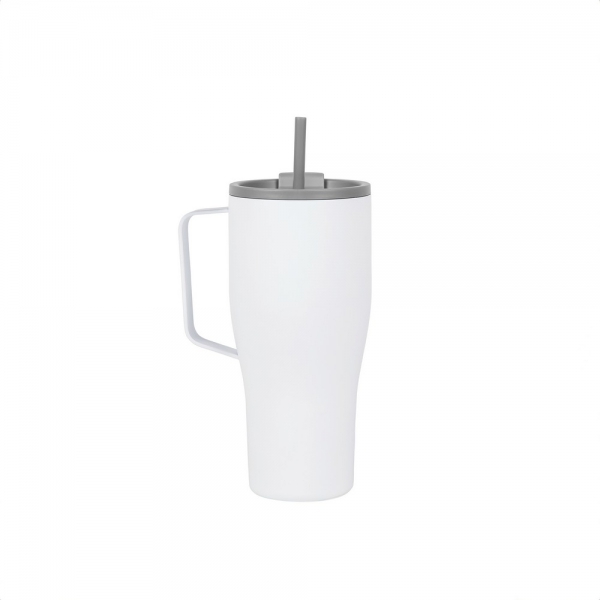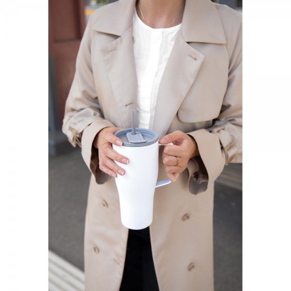 Kubek termiczny 880 ml, uchwyt, podwójne ścianki z próżnią pomiędzy, utrzymuje temperaturę napojów ciepłych do 3 godzin oraz zimnych do 16 godzin, wykonana ze stali nierdzewnej z recyklingu z certyfikatem RCS, całkowita zawartość materiałów z recyklingu obliczona w oparciu o wagę całkowitą przedmiotu: 65%, wyłącznie mycie ręczne