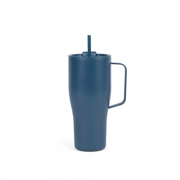 Kubek termiczny 880 ml, uchwyt, podwójne ścianki z próżnią pomiędzy, utrzymuje temperaturę napojów ciepłych do 3 godzin oraz zimnych do 16 godzin, wykonana ze stali nierdzewnej z recyklingu z certyfikatem RCS, całkowita zawartość materiałów z recyklingu obliczona w oparciu o wagę całkowitą przedmiotu: 65%, wyłącznie mycie ręczne