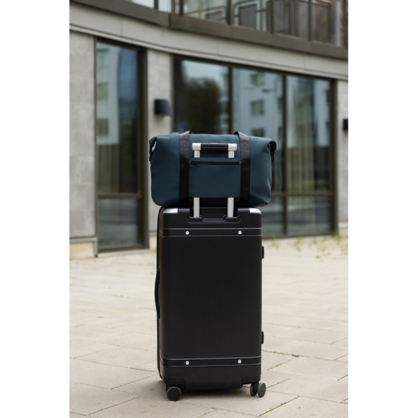 Torba sportowa, podróżna, przestronna przegroda główna z mniejszymi kieszeniami wewnątrz, pasek do zamocowania na walizce, wykonana z poliestru z recyklingu, całkowita zawartość materiałów z recyklingu obliczona w oparciu o wagę całkowitą przedmiotu: 20%