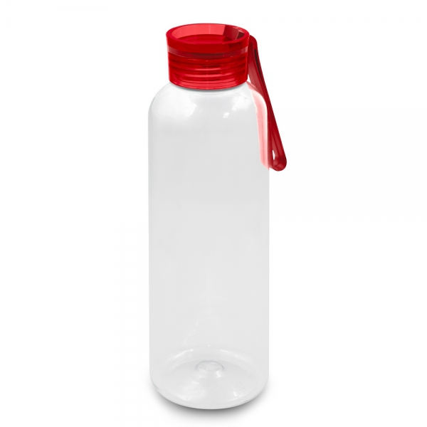 Butelka sportowa 500 ml z uchwytem zwiększającym wygodę użytkowania, przeznaczona wyłącznie do zimnych i niegazowanych napojów, produkt wykonany z RPET, PS oraz silikonu