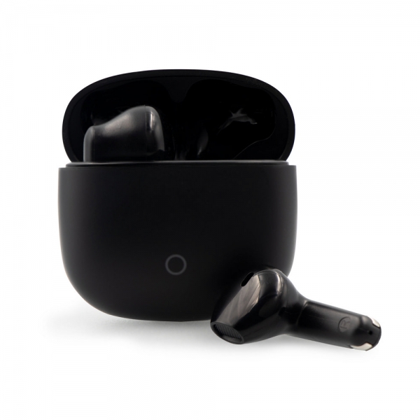 Słuchawki bezprzewodowe BT 5.4, douszne, etui z podświetlanym elementem w kształcie okręgu, bateria stacji ładującej 200 mAh, bateria słuchawek 40 mAh, funkcja odbierania połączeń, wbudowany mikrofon, czas pracy: ok. 3h, zasięg do 10 m, kabel USB-C w komplecie, produkt wykonany z ABS