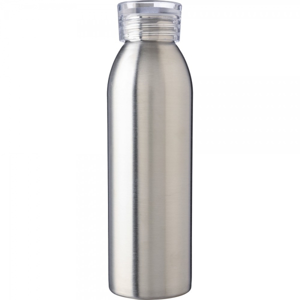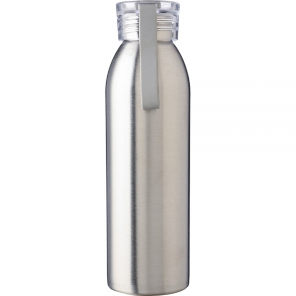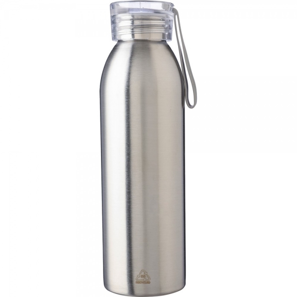 Butelka sportowa 650 ml wykonana ze stali nierdzewnej z recyklingu, zawiera pojedynczą ściankę, silikonowy uchwyt zwiększający wygodę użytkowania, ikona stali nierdzewnej recyklingu na produkcie, produkt zapakowany w brązowy kartonik