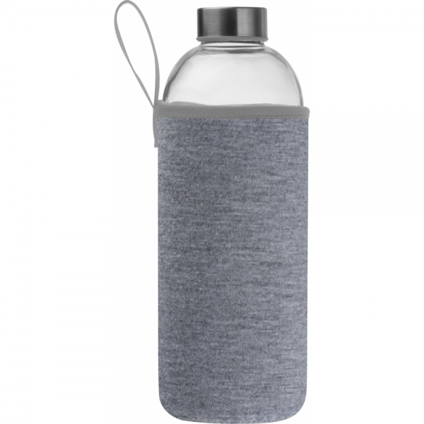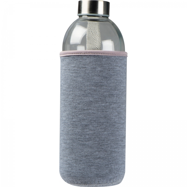 Szklana butelka o pojemności 1000 ml w neoprenowym etui, z zakrętką ze stali nierdzewnej.