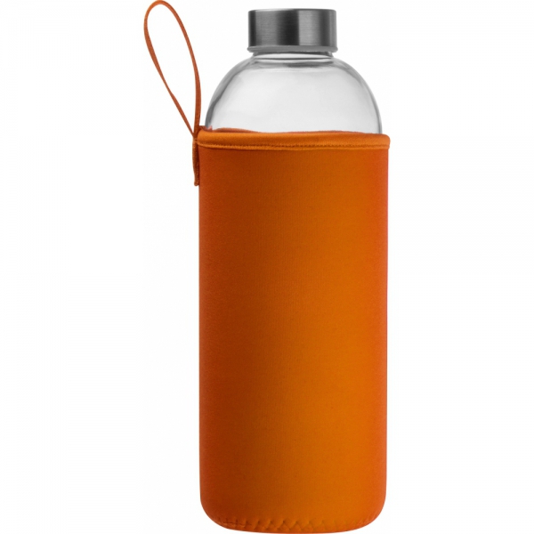 Szklana butelka o pojemności 1000 ml w neoprenowym etui, z zakrętką ze stali nierdzewnej.
