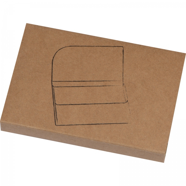 Wizytownik z metalu w korkowej obudowie, zamykany na magnetyczny zatrzask, z materiałową wyściółką.