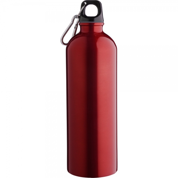 Butelka sportowa 750ml, jednowarstwowa, ikona recyklingu na produkcie, nie nadaje się do mycia w zmywarce, produkt wykonany ze stali nierdzewnej z recyklingu, nakrętka z PP, srebrny aluminiowy karabińczyk