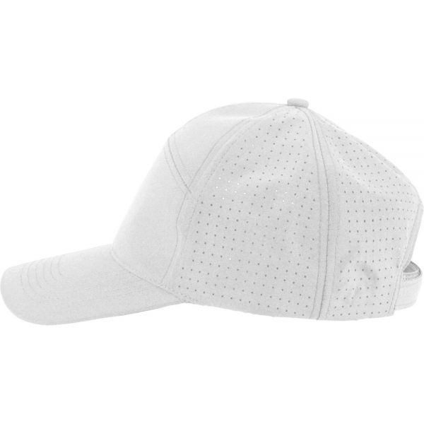 Czapka z daszkiem z laserowo wyciętymi otworami wentylacyjnymi na tylnych panelach, posiada 7-panelową konstrukcję z jednym panelem z przodu oraz daszek o długości 7 cm, regulowana i oddychająca, bez etykiety PU, produkt wykonany z poliestru