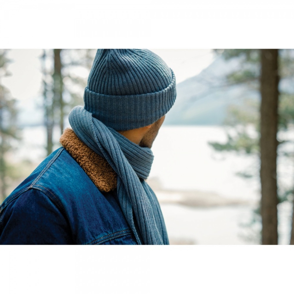 Czapka, dwuwarstwowa, uniwersalny rozmiar, wykonana z dodatkiem przędzy Polylana® która stanowi doskonałą alternatywę dla włókna akrylowego pozwalającą na oszczędność energii i wody, dzięki zastosowaniu technologii AWARE™ wykorzystane włókna są identyfikowalne z pochodzenia oraz wyprodukowane zgodnie z ideą zrównoważonego rozwoju, 2% wpływów z każdego sprzedanego produktu z kolekcji Impact jest przekazywane na rzecz Water.org
