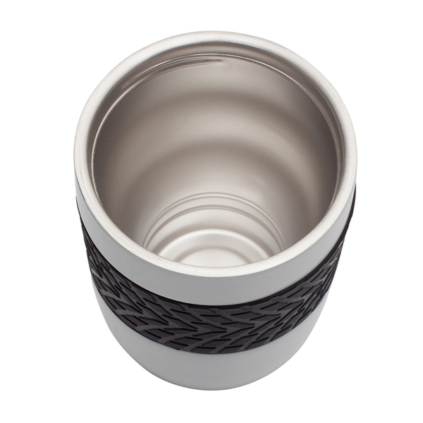 Szczelny kubek termiczny z ergonomiczną opaską ułatwiającą trzymanie kubka. Przyssawka umieszczona na spodzie zapobiega przypadkowemu przewróceniu się kubka. Oderwanie od podłoża przez podniesienie kubka pod kątem prostym do góry. Dwie ścianki ze stali nierdzewnej, wewnątrz stal 18/8 o podwyższonej jakości. Utrzymuje temperaturę powyżej 40°C przez 2 godziny. Posiada zamknięcie typu flip up sip i leak proof – zapobiegające wyciekaniu płynów. Pojemność 200 ml.