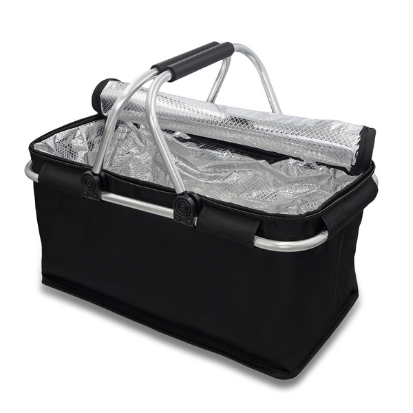 Wykonany z poliestru izotermiczny kosz piknikowy o pojemności 32 litrów. Zapewnia bardzo dobrą izolację termiczną dzięki starannemu wyłożeniu wnętrza grubą warstwą izotermiczną z folii aluminiowej oraz pianki EPE. Aluminiowa rama, uchwyt z pianki EVA. Maksymalne obciążenie 15 kg