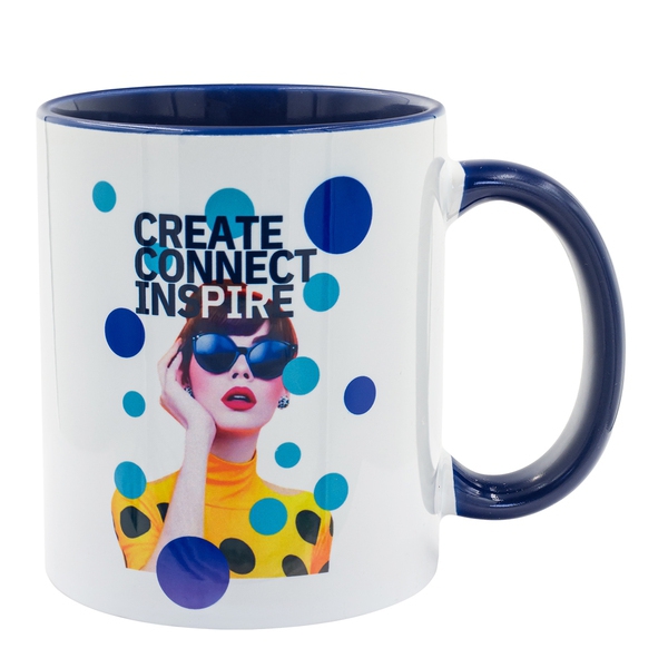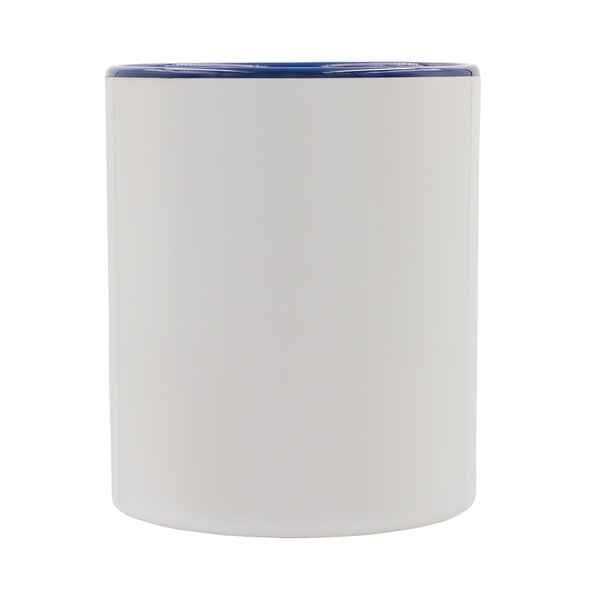 Kubek ceramiczny o pojemności 330 ml, przygotowany pod nadruk sublimacyjny, z kolorowym uchwytem i wnętrzem.
