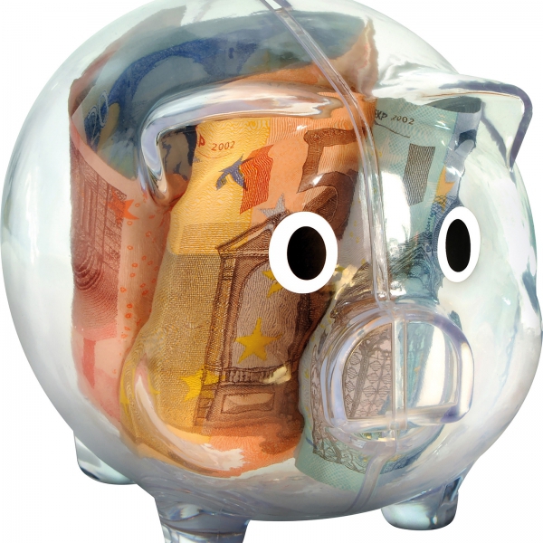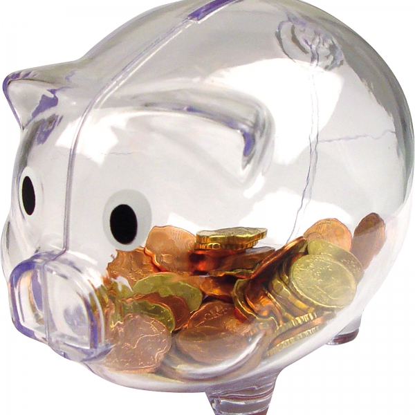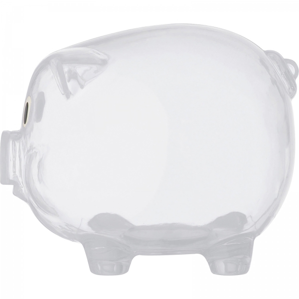 Zabawna świnka - skarbonka wykonana z transparentnego plastiku.