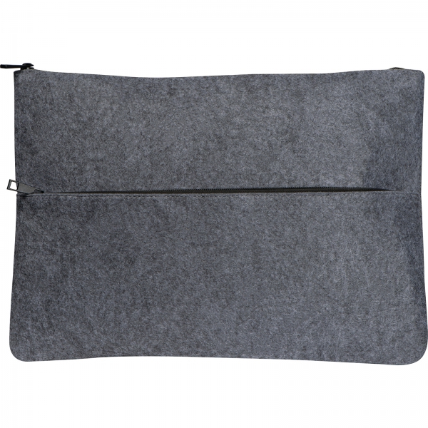 Materiałowa teczka na dokumenty, wykonana z filcu pochodzącego z recyklingu, może być używana jako torba na małego laptopa.