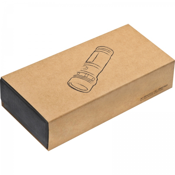 Metalowa latarka z 14 żarówkami LED. Dostarczana w kartonowym pudełku razem z bateriami 3xAAA.