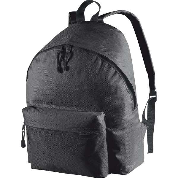 Duży, praktyczny plecak wykonany z mocnego poliestru, wyposażony w miękkie, wygodne paski na ramiona oraz dodatkową kieszeń z przodu.