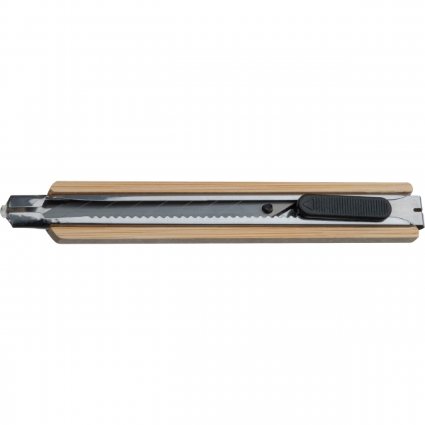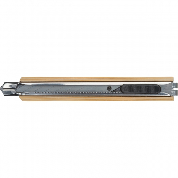 Nóż do kartonu z łamanym ostrzem, w bambusowej obudowie.