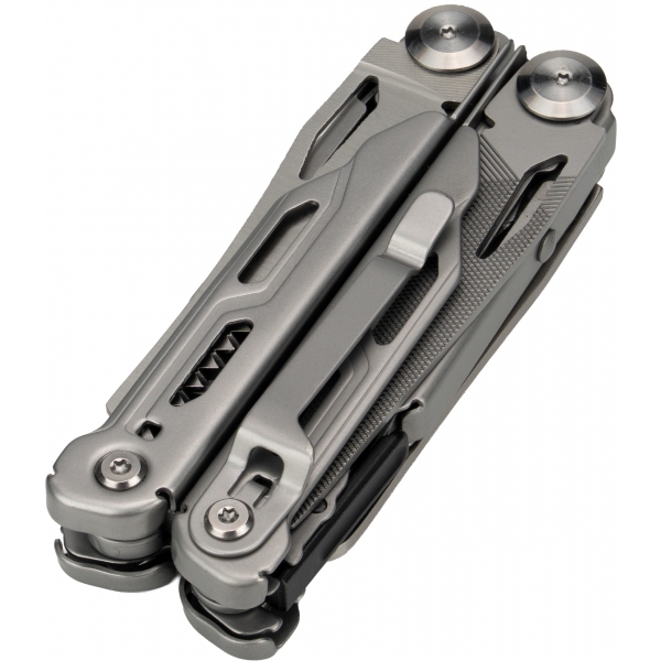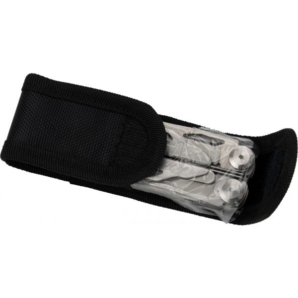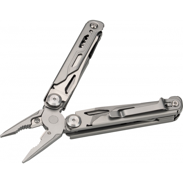 Multinarzędzie 17 w 1, ze stali nierdzewnej, wyposażone między innymi w: szczypce, nóż, piłke, nożyczki, śrubokręt itp. Posiada praktyczny klips, dzięki któremu można je przymocować do paska.