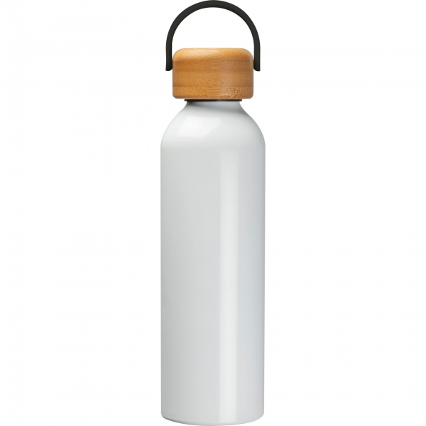 Butelka do picia, wykonana z aluminium pochodzącego z recyklingu, z bambusową zakrętką z rączką do przenoszenia. Pojemność 600 ml.