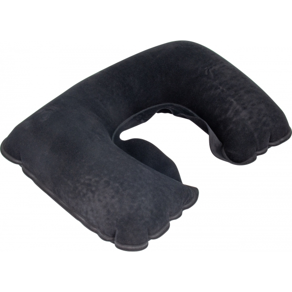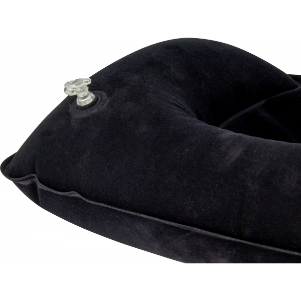 Welurowa, dmuchana poduszka podróżna o ergonomicznym kształcie. Wymiary na płasko: 41,5 x 26,5 cm, wymiary po napompowaniu: 34 x 25 x 10 cm.