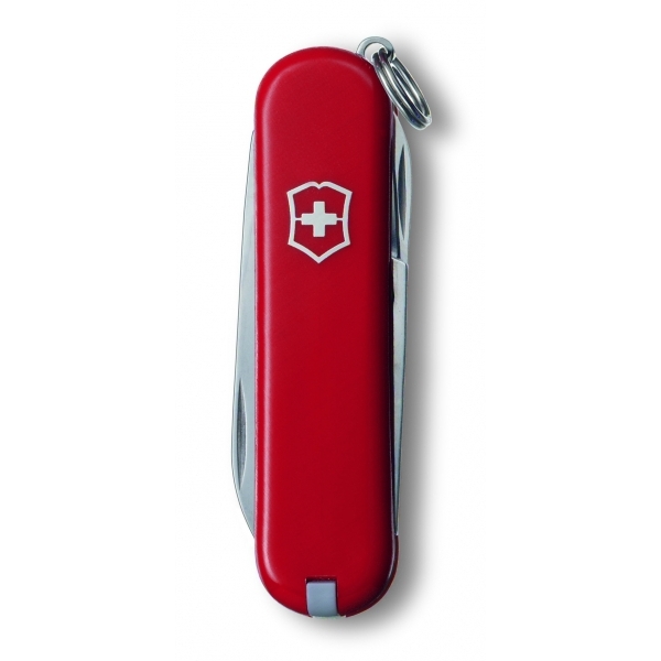 Scyzoryk Classic SD, dzięki swojemu niewielkiemu rozmiarowi, sprawdzi się idealnie jako bardzo praktyczny brelok do kluczy. Posiada 7 narzędzi: 1. ostrze 2. kółko 3. pęseta 4. wykałaczka 5. nożyczki 6. pilniczek do paznokci ze 7. - śrubokrętem