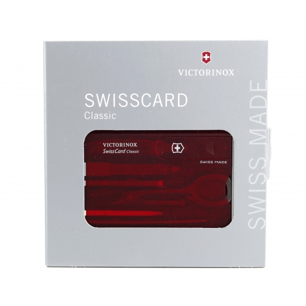 Swisscard to niewielka karta, którą możesz schować w portfelu czy kieszeni. Swisscard wyposażony jest w 10 przydatnych narzędzi: 1. Nóż (również do otwierania listów) 2. Pilnik do paznokci ze 3. - Śrubokrętem 4. Nożyczki 5. Pęseta 6. Wykałaczka 7. Długopis 8. Szpilka 9. Miarka z podziałką centymetrową 10. Miarka z podziałką calową