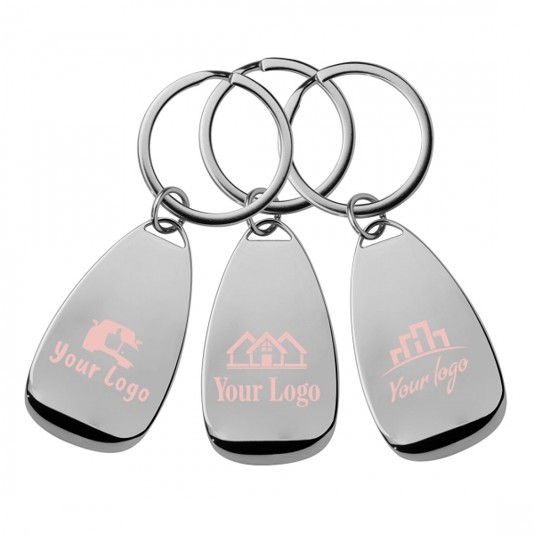 Brelok do kluczy z błyszczącego i chromowanego metalu z otwieraczem do butelek.