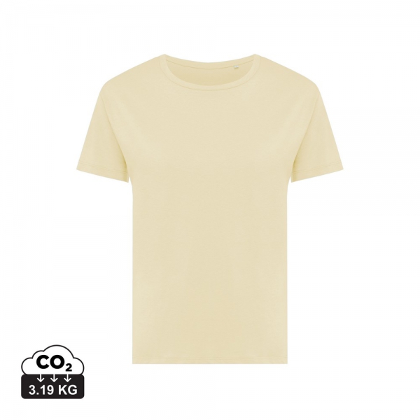 Koszulka damska, regularny krój, okrągły dekolt, krótkie rękawy, wykonana w 30% z bawełny z recyklingu i w 70% z bawełny organicznej o gramaturze 160 g/m2, posiada wbudowany znacznik AWARE™, który potwierdza wykorzystanie materiałów z recyklingu, posiada kod QR na metce, który prowadzi do cyfrowego paszportu produktu, 2% wpływów z każdego sprzedanego produktu z kolekcji Impact jest przekazywane na rzecz Water.org, ślad węglowy produktu: 3,19 kg CO2