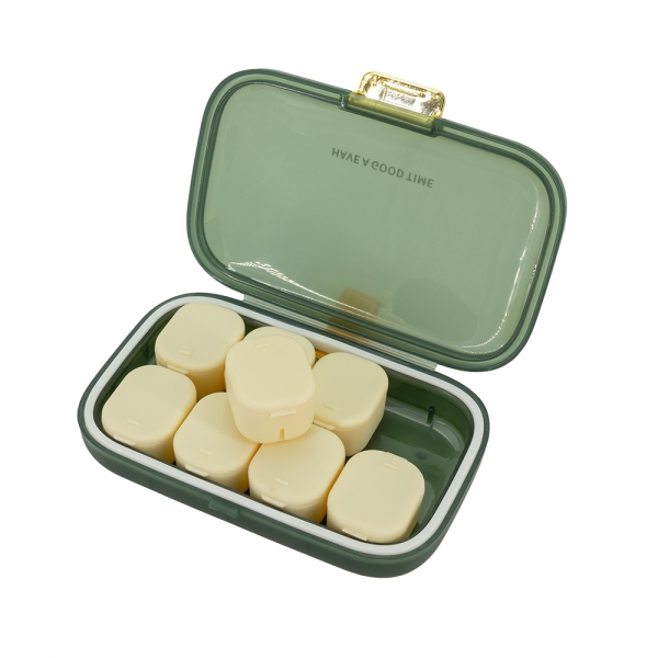 Praktyczny organizer na kapsułki z 8 komorami, które znacznie ułatwią porcjowanie leków. Posiada solidne zamknięcie na zatrzask, które zabezpiecza zawartość. Niewielki rozmiar umożliwia wygodny transport pojemnika.