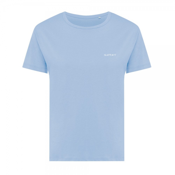 Koszulka damska, regularny krój, okrągły dekolt, krótkie rękawy, wykonana w 30% z bawełny z recyklingu i w 70% z bawełny organicznej o gramaturze 160 g/m2, posiada wbudowany znacznik AWARE™, który potwierdza wykorzystanie materiałów z recyklingu, posiada kod QR na metce, który prowadzi do cyfrowego paszportu produktu, 2% wpływów z każdego sprzedanego produktu z kolekcji Impact jest przekazywane na rzecz Water.org, ślad węglowy produktu: 3,11 kg CO2