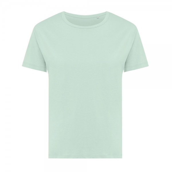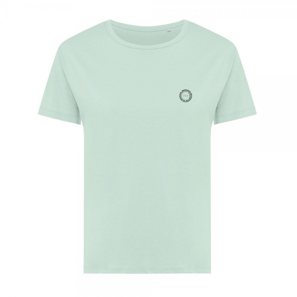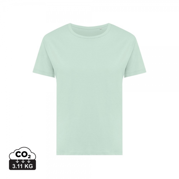 Koszulka damska, regularny krój, okrągły dekolt, krótkie rękawy, wykonana w 30% z bawełny z recyklingu i w 70% z bawełny organicznej o gramaturze 160 g/m2, posiada wbudowany znacznik AWARE™, który potwierdza wykorzystanie materiałów z recyklingu, posiada kod QR na metce, który prowadzi do cyfrowego paszportu produktu, 2% wpływów z każdego sprzedanego produktu z kolekcji Impact jest przekazywane na rzecz Water.org, ślad węglowy produktu: 3,11 kg CO2