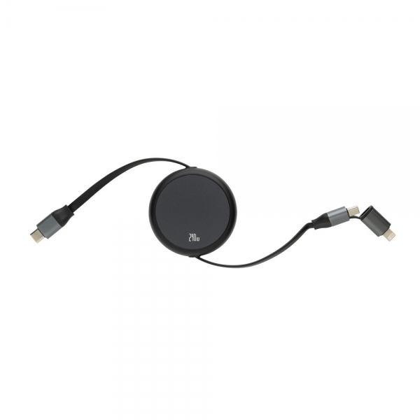 Zwijany kabel do ładowania i synchronizacji 2 w 1, końcówki: 2 x USB-C, iOS, moc ładowania do 240W, obsługuje CarPlay i Android Auto, wykonany z materiałów z recyklingu, całkowita zawartość materiałów z recyklingu obliczona na podstawie masy całkowitej produktu: 69%
