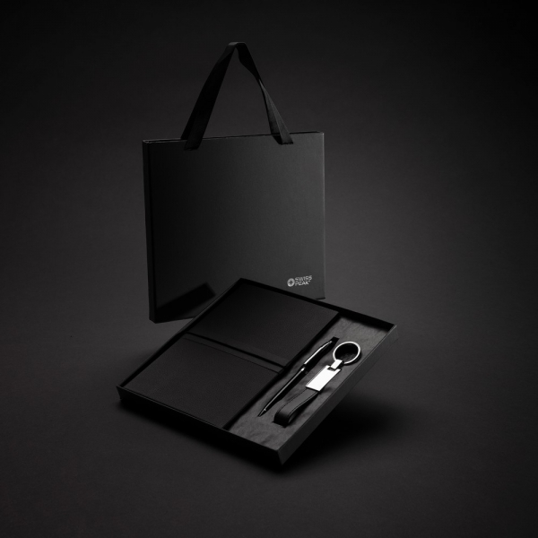 Zestaw upominkowy, długopis i notatnik (160 kremowych stron z papieru z recyklingu), wykonane z materiałów z recyklingu, całkowita zawartość materiałów z recyklingu obliczona na podstawie masy całkowitej produktu: 75%